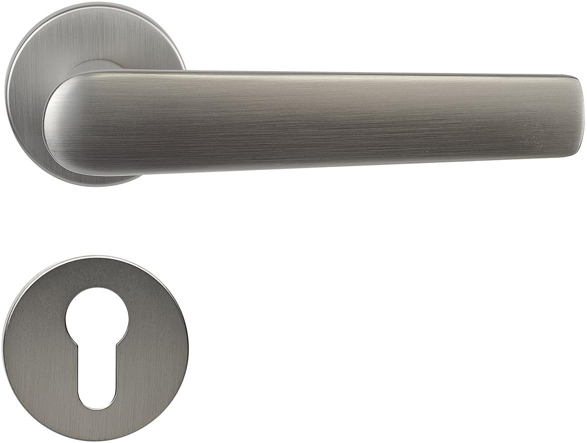 Kovanie na dvere – rozetové, okrúhla rozeta, vo vyhotovení kľučka – kľučka, vnútorné, na pravé dvere, druh zámku PZ, materiál hliník, na hrúbku dverí od 32 do 58 mm, matný povrch, strieborná farba Kovanie na…