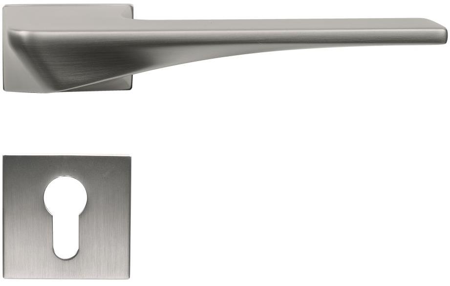 Kovanie na dvere – rozetové, štvorcová rozeta, vo vyhotovení kľučka – kľučka, vnútorné, na pravé dvere, druh zámku PZ, materiál zamak, na hrúbku dverí od 32 do 58 mm, matný povrch, strieborná farba Kľúčové vlastnosti Kovanie na dvere Richter SlovakiaZamakové kovanie na štvorcových rozetách s vratnou pružinou kľučiekPoužitý materiál vykazuje vysokú pevnosť a odolnosť povrchu proti opotrebovaniuPr