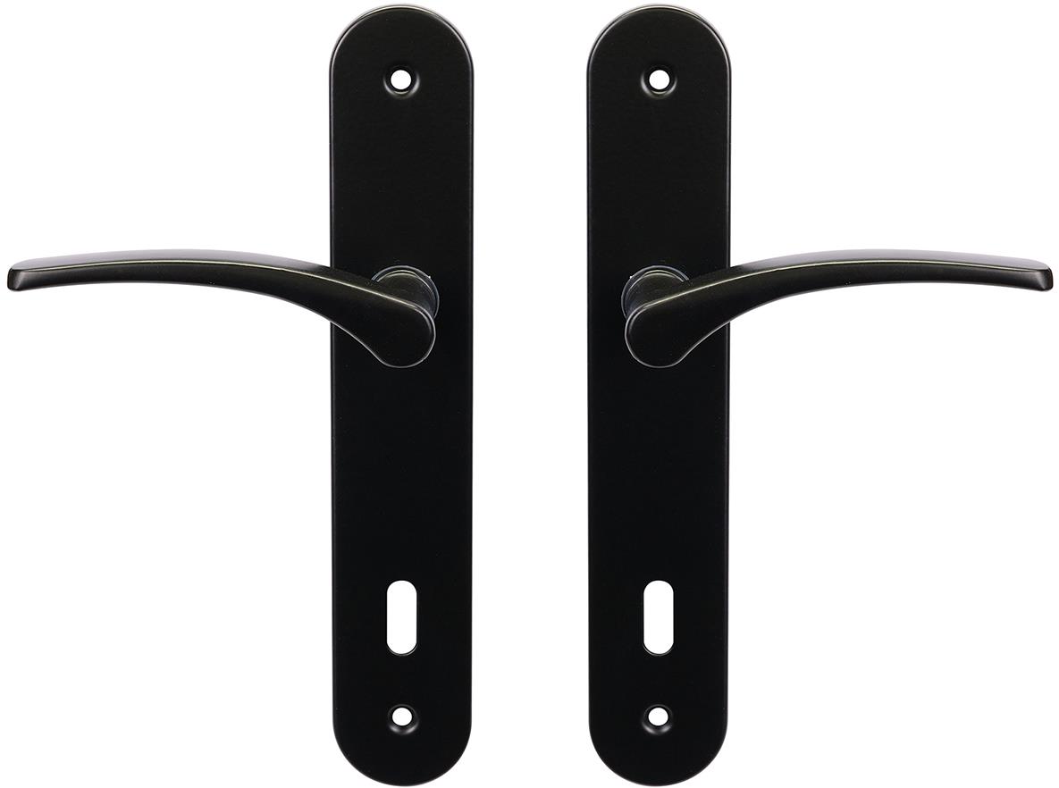 Kovanie na dvere – štítové, vo vyhotovení kľučka – kľučka, vnútorné, druh zámku BB, materiál oceľ, na hrúbku dverí od 35 do 55 mm, rozstup kľučky 72, matný povrch, čierna farba Jednoduché otváranie a nový…