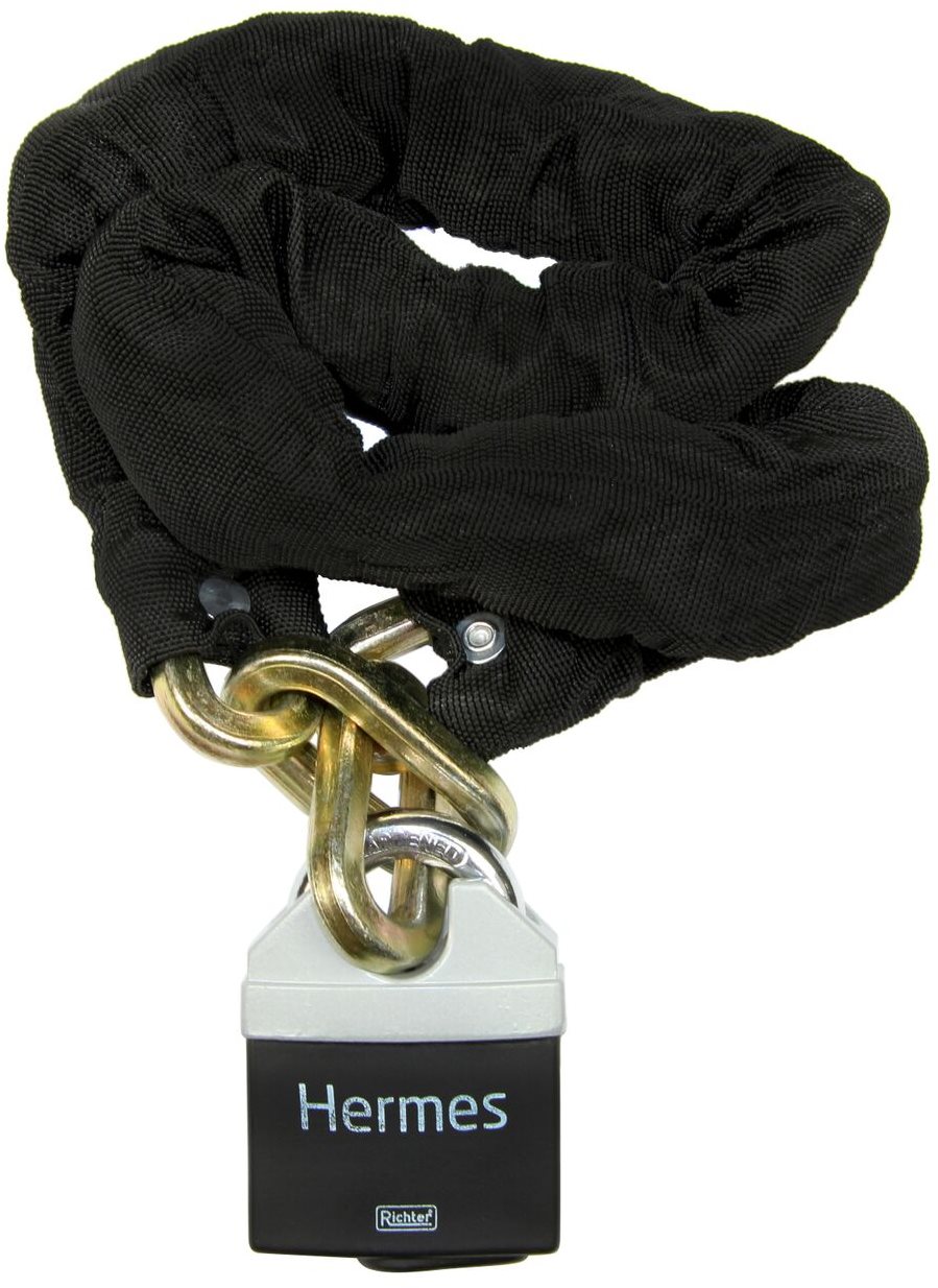 Reťazový zámok – a visiaci zámok certifikovaný v bezpečnostnej triede RC2 podľa STN EN 1627: 2012. Certifikát NBÚ typ 1 SS4 = 1. Bezpečnostná reťaz HARDENED s ochranným krytom z textílie, oko reťaze O 10mm,…
