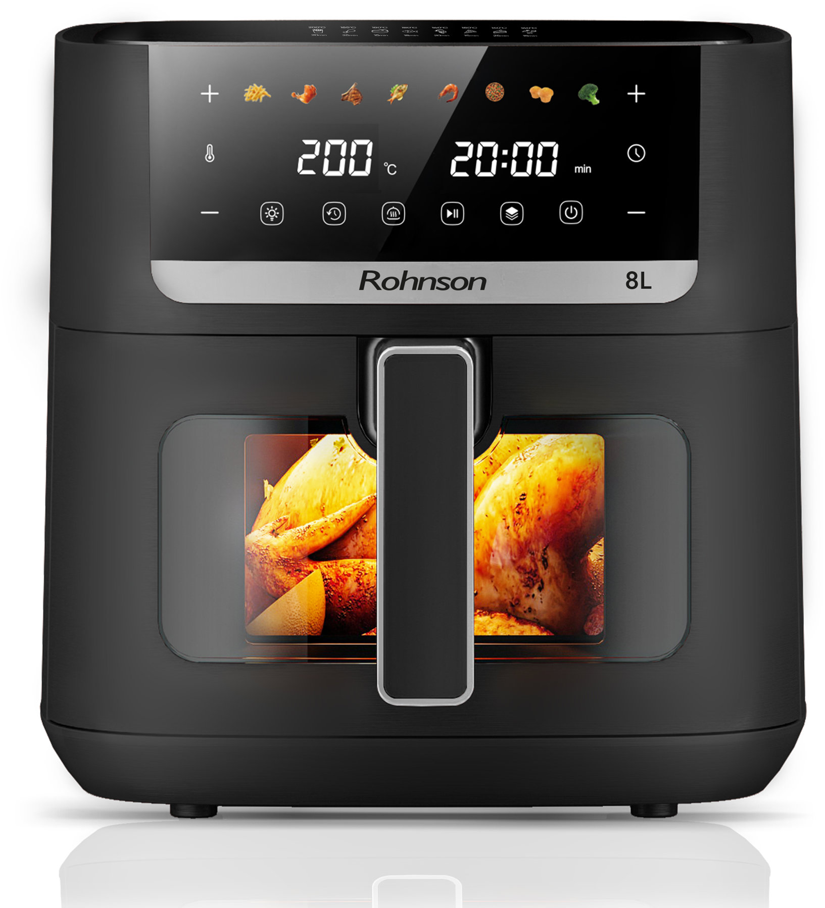Teplovzdušná fritéza – digitálne ovládanie, nastaviteľná teplota od 80 do 200 °C, s nepriľnavým povrchom, s displejom, s ochranou proti prehriatiu, s termostatom, s vekom s priezorom, časti vhodné do umývačky, s vnútorným osvetlením, časovač, automatické vypnutie, regulácia teploty a automatické programy, 8 programov, vyberateľná nádoba a fritovací kôš súčasťou, príkon 1800 W, objem nádoby 8 l, antikorová nádoba s nepriľnavým povrchom, 1 fritovací kôš, dĺžka kábla 0,83 m, hmotnosť 4,5 kg, rozmery 31 × 31 × 40 cm (V׊×H), čierna farba Teplovzdušná fritéza Rohnson R-2885 vyniká elegantným dizajnom a zdravšou prípravou pokrmov. Vďaka objemu 8 l dokáže pripraviť pokrmy pre celú rodinu. Umožňuje fritovanie s až o 80 % menej tuku. Každý