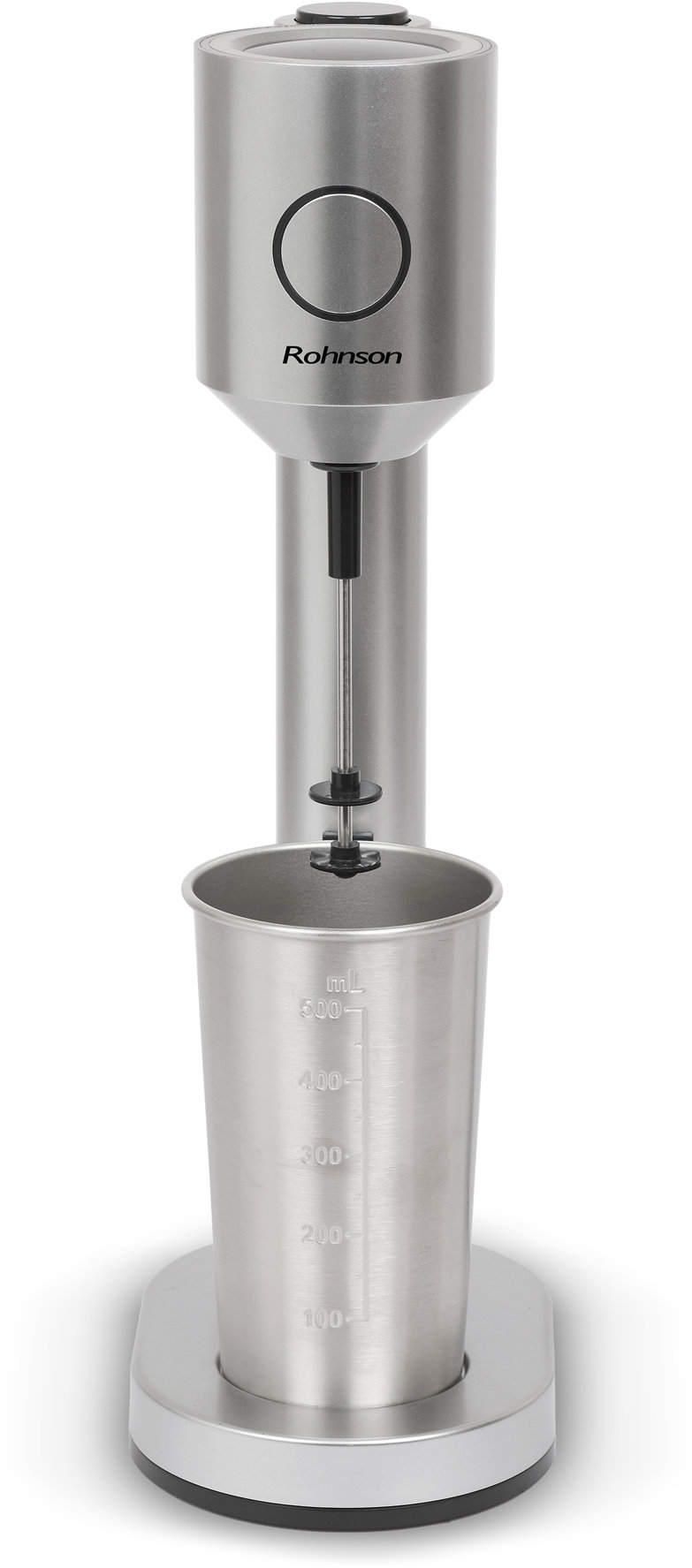 Frapovač – elektrický, na výrobu mliečnej peny, kokteilu a ľadovej kávy, príslušenstvo vhodné do umývačky a protišmyková základňa, 1 program, príkon 100 W, materiál prístroja nehrdzavejúca oceľ a plast, materiál nádoby oceľ, nádoba v balení, objem 0,5 l, rozmery 40 × 12 × 17 cm (V׊×H) Frapovač Rohnson R-4422 umožní prípravu frappé, ovocných a miešaných koktailov aj dresingov. Dokáže aj napeniť mlieko. Disponuje nehrdzavejúcou mixovacou nádobou s objemom 500 ml a dvojitými šľahacími