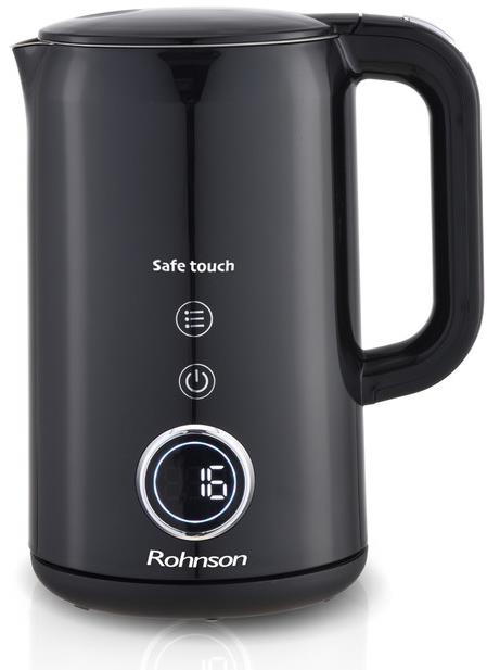 Rýchlovarná kanvica – s reguláciou teploty, antikorová, objem 1,7 l, čierna farba, príkon 2200 W, dotykové ovládanie, dvojitý plášť, LCD displej, otočná základňa a úložný priestor na kábel, automatické otváranie veka, automatické vypnutie, ochrana proti prehriatiu a chodu na prázdno, zvuková signalizácia, udržanie teploty, ukazovateľ teploty vody, upozornenie pri dosiahnutí varu Elegantná rýchlovarná kanvica Rohnson R-7522 Safe Touch prináša kombináciu špičkového dizajnu a moderných funkcií. Dvojitá stena zaisťuje, že sa povrch kanvice nezahreje a zostáva bezpečný na dotyk, z