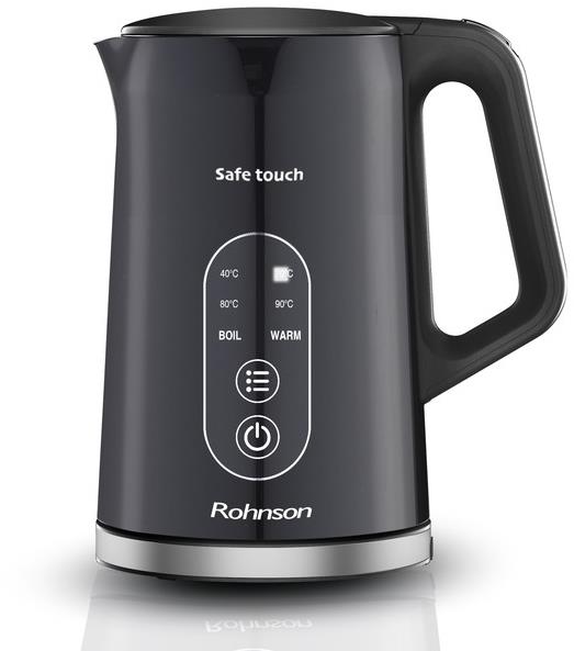 Rýchlovarná kanvica – s reguláciou teploty, antikorová, objem 1,7 l, čierna farba, príkon 2200 W, dotykové ovládanie, dvojitý plášť, LCD displej, otočná základňa a úložný priestor na kábel, automatické otváranie veka, automatické vypnutie, ochrana proti prehriatiu a chodu na prázdno, zvuková signalizácia, udržanie teploty, ukazovateľ teploty vody, upozornenie pri dosiahnutí varu Rýchlovarná kanvica Rohnson R-7527 Safe Touch sa vyznačuje moderným dizajnom, skvelým výkonom a maximálnou bezpečnosťou pri varení vody. Elegantné vyhotovenie s praktickými funkciami prináša nielen vi
