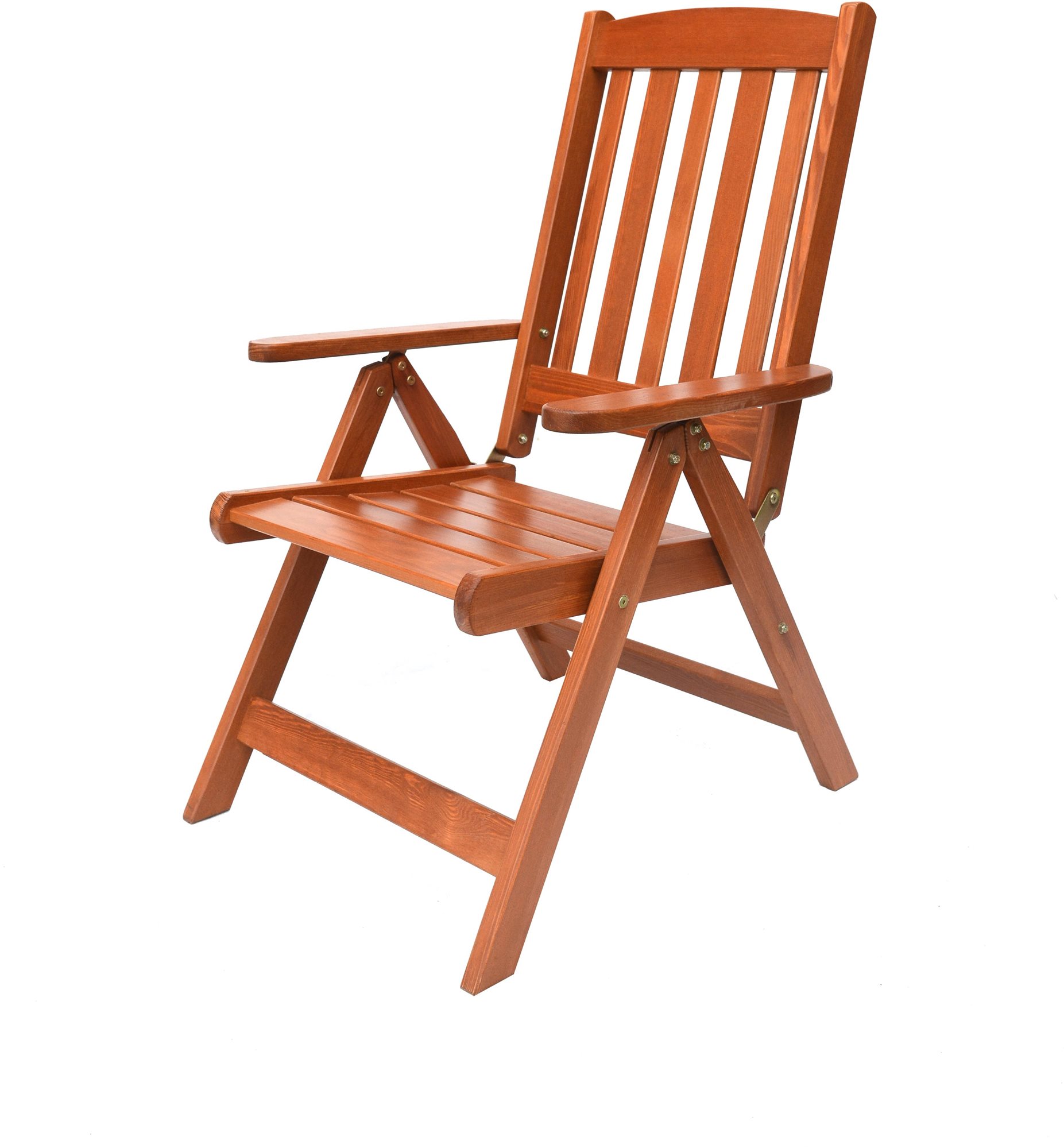 Záhradné kreslo – polohovacie, s podrúčkami, s opierkou chrbta, materiál konštrukcie drevo, materiál sedadla/opierky chrbta drevo, druh dreva borovica, nosnosť 100 kg, hnedá farba konštrukcie, hnedá farba opierky chrbta/sedu, rozmery 67 × 60 × 110…