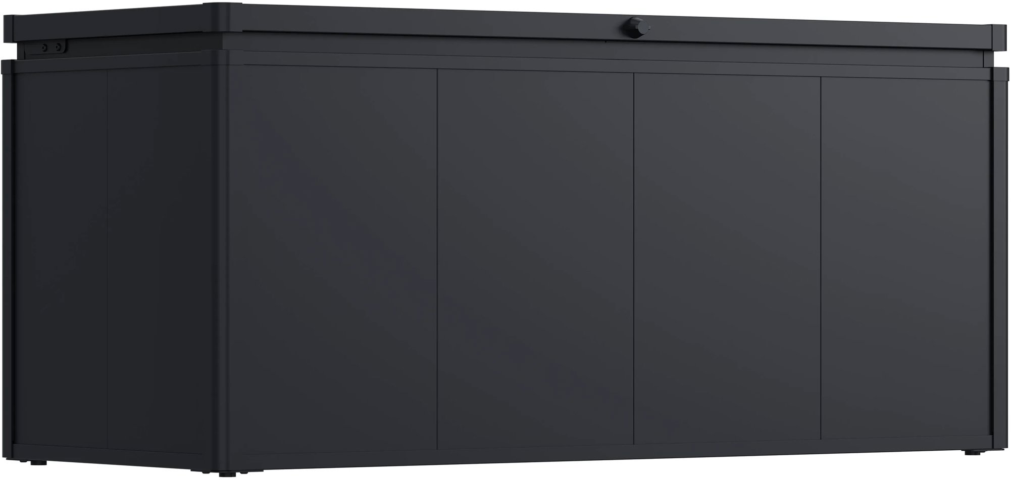 Záhradný box – kovový, uzamykateľný, objem 640 l, sivá farba Záhradný box ROJAPLAST s objemom 640 l je ideálnym riešením na bezpečné uskladnenie záhradného náčinia i ďalších drobností, pretože ponúka dostatok priestoru. Kovová konštrukcia je synonymom stability