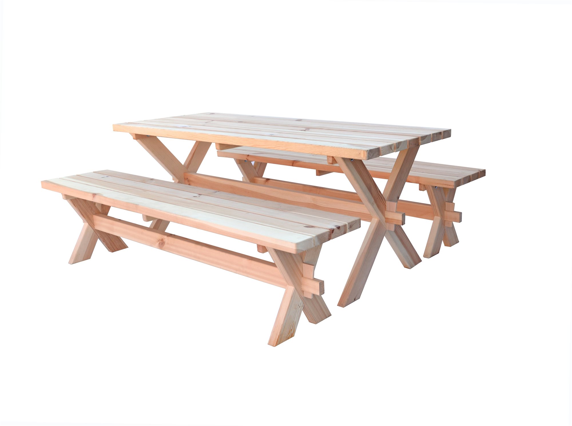 Záhradný nábytok – zostava, 2 lavice, nosnosť 320 kg, stôl obdĺžnik, rozmer 70 cm × 180 cm × 70 cm, materiál dosky stola drevo, druh dreva borovica, materiál sedadla/opierky chrbta lavice drevo Záhradná zostava OLD…