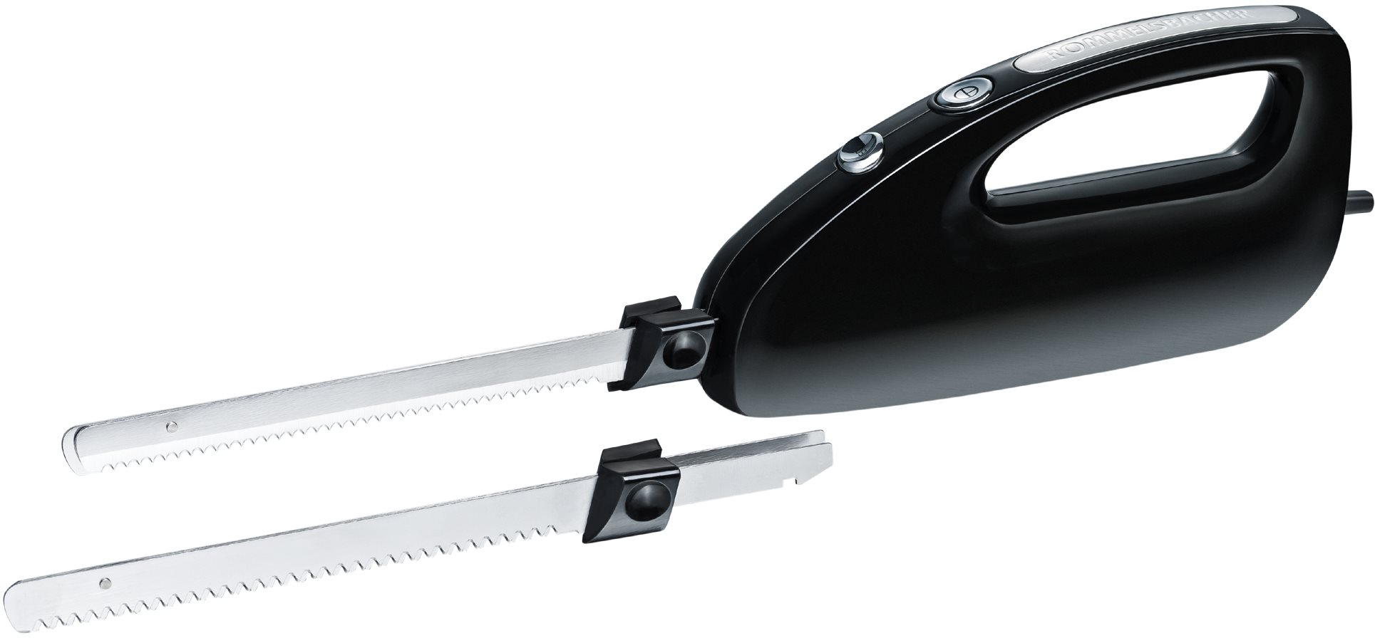 Kuchynský nôž – materiál čepele: oceľ, dĺžka čepele 15 cm, elektrický nôž, materiál rukoväti: plast Praktický elektrický nôž Rommelsbacher EM 150 uľahčuje každodennú prácu pri krájaní chleba, koláčov, mäsa a hydiny. Vďaka ergonomickej rukoväti sa ľahko a pohodlne používa. K dispozícii sú 2 č