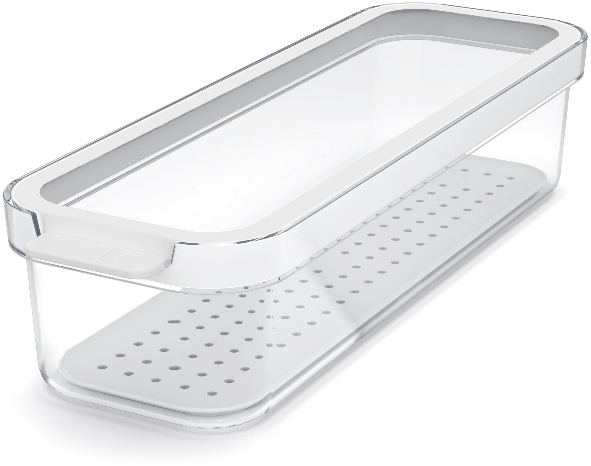 Organizér do chladničky –, vhodný do umývačky a stohovateľný, objem 1,15 l, rozmery 6,2 × 9,2 × 28,2 cm (V׊×H), číra farba Organizér do chladničky CAUMA box 1,15 l. Udržujte v chladničke poriadok s radom CAUMA. Sedem rôznych veľkostí je možné vzájomne kombinovať a vytvoriť tak kompaktný a ideálny systém. Vložka s otvormi