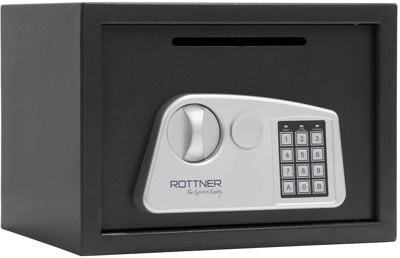 Sejf do podlahy, vonkajšie rozmery 25 cm × 35 cm × 28 cm, hmotnosť 8 kg, zámok elektronický na kód, sivá farba Zaujíma vás finančne nenáročné, ale pritom bezpečné riešenie na ochranu dôležitých zmlúv a dokumentov alebo menšej sumy peňazí? Potom teda je sejf pre vás tou správnou voľbou. Sejf do domácnosti Rott