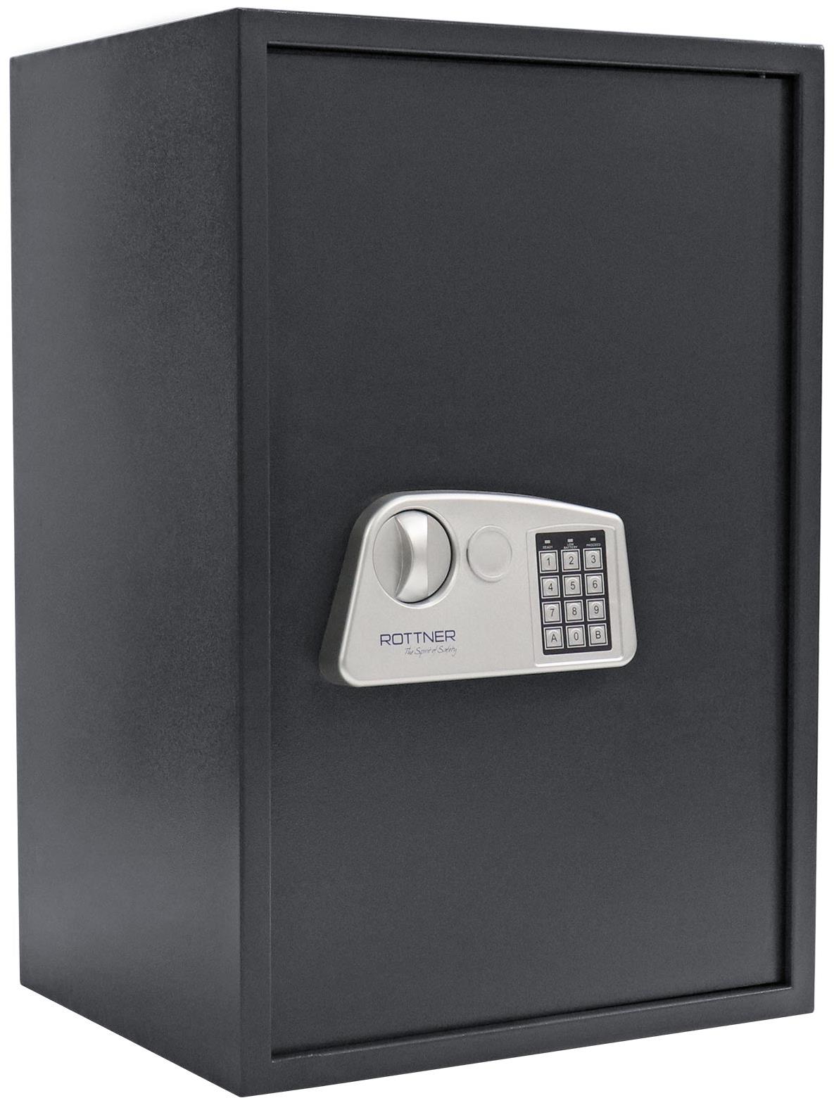 Sejf do podlahy, vonkajšie rozmery 67 cm × 45 cm × 36 cm, hmotnosť 25 kg, zámok elektronický na kód, sivá farba Obzeráte sa po bezpečnom a zároveň lacnejšom riešení na uschovanie cenností, dokumentov alebo neveľkého objemu bankoviek? Za týchto okolností pre vás bude sejf skvelou voľbou. Domáci sejf Rottner Jupi