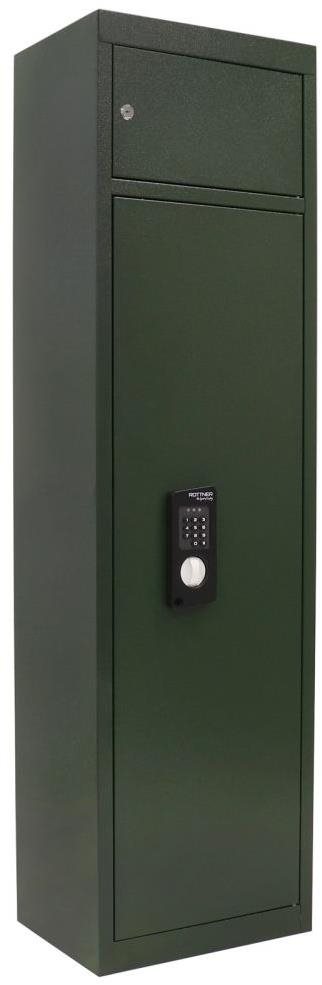 Skriňa – na dlhé zbrane, rozmery 145×30×40cm, zámok elektronický, farba zelená, ukotvenie do steny Zbraňový trezor UTAH 8EL pojme osem dlhých zbraní. Jeho súčasťou je aj vnútorná uzamykateľná schránka, do ktorej môžete uložiť najrôznejšie cennosti. Zbraňový trezor disponuje elektronickým zámk