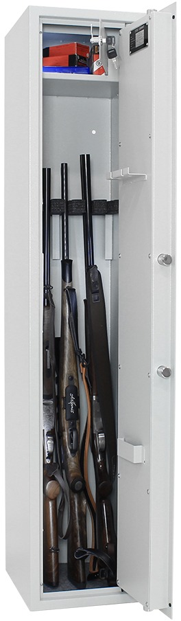 Trezor do steny a do podlahy, zbraňový trezor, vonkajšie rozmery 145 × 30 × 34 cm, hmotnosť 51 kg, zámok na kľúč Trezor Rottner YUKON 5 spĺňa všetky zákonné požiadavky na uloženie strelných zbraní. Zmestí sa do neho až 5 zbraní s dĺžkou až 1 290 mm a nechýba oddelený priestor pre muníciu. Dokonca sú pripravené n