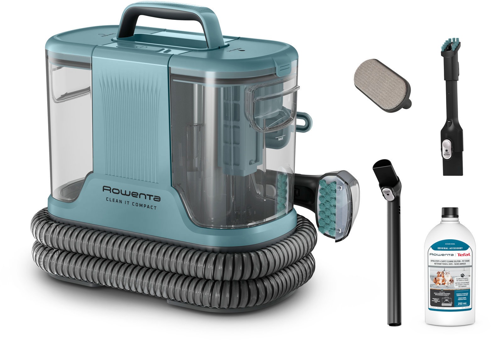 Viacúčelový vysávač – na koberce, mäkké povrchy a čalúnenie, na mokré čistenie, objem zbernej nádoby 0,85 l, ovládanie na tele, dĺžka kábla 4 m, hadica, čistiaci roztok súčasťou balenia, s káblom Viacúčelový vysávač Rowenta IN3021F0 Clean ItViacúčelový vysávač Rowenta Clean It IN3021F0 je ideálnym pomocníkom na rýchle a efektívne upratovanie škvŕn a nečistôt, a to najmä po domácich mazná