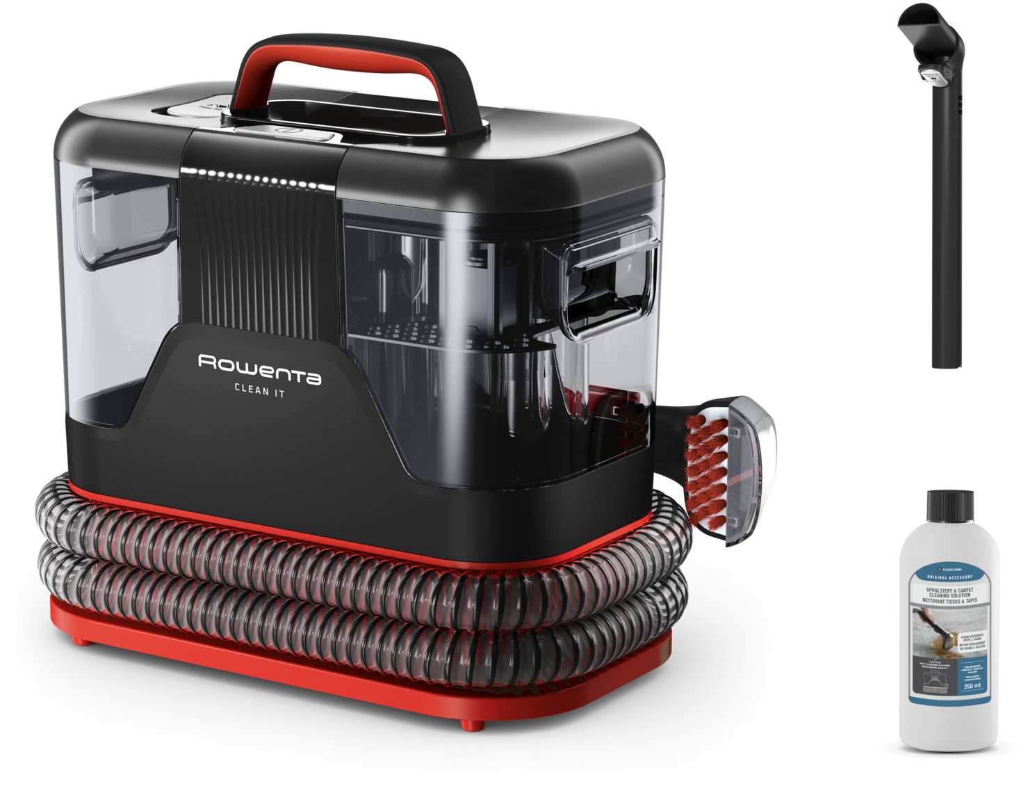 Viacúčelový vysávač – na koberce a mäkké povrchy, na mokré čistenie, objem zbernej nádoby 1,5 l, ovládanie na tele, dĺžka kábla 5 m, hadica, nádobka na vodu a čistiaci roztok súčasťou balenia, s káblom, hlučnosť 79,8 dB Viacúčelový vysávač Rowenta IN5012F0 Clean ItPotrpíte si na čistú domácnosť a kvalitné zariadenie? Viacúčelový vysávač Rowenta IN5012F0 Clean It je jednoduché a účinné riešenie na rýchle odstraňovanie