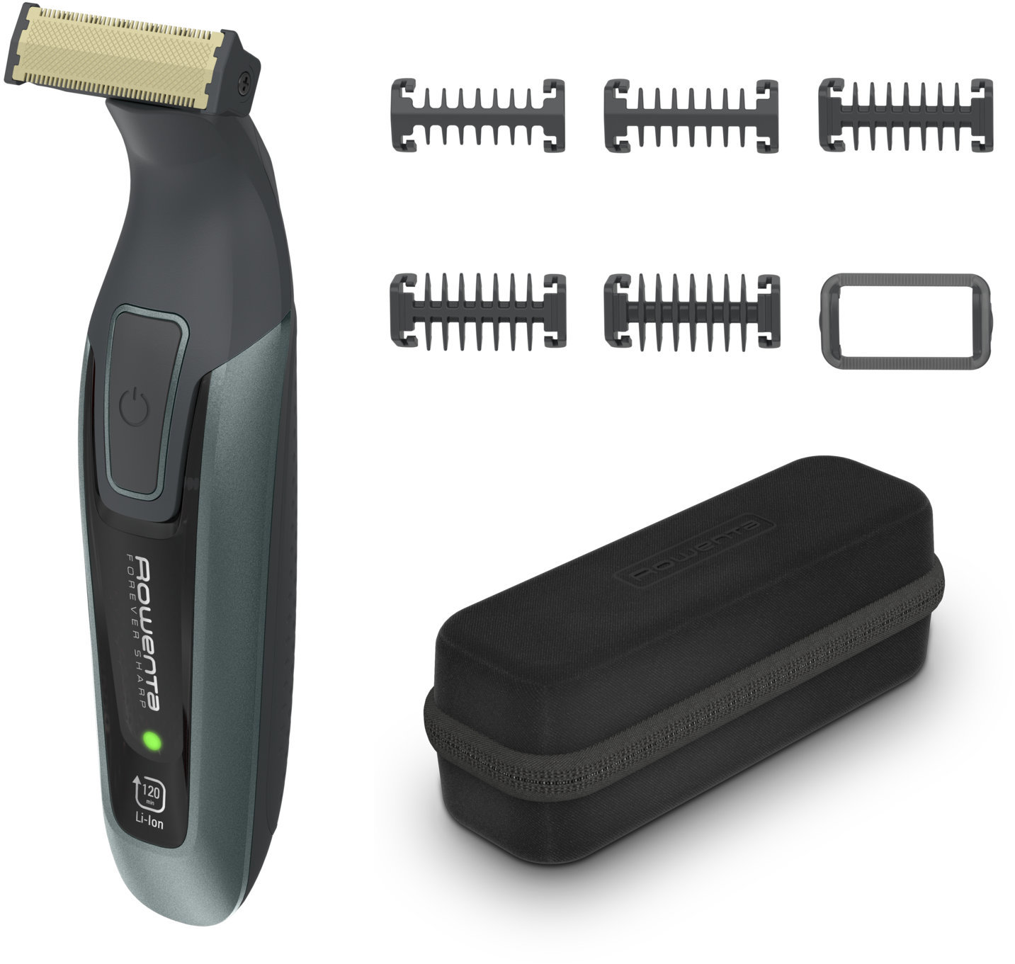 Zastrihávač – pre mužov, na fúzy, riešenie 3 v 1 na zastrihávanie, tvarovanie a holenie, s 5 hrebeňovými nadstavcami (1-2-3-5-6 mm), samoostriace čepele zo 100 % nehrdzavejúcej ocele, vodotesné a bezdrôtové vyhotovenie na použitie aj v sprche, rýchle nabíjanie za 90 minút, až 120 minút prevádzky, LED indikátor stavu batérie, typ lítium-iónovej batérie, balenie obsahuje 5 hrebeňových nadstavcov, cestovné puzdro s ochranou proti nárazom, nabíjačku, čistiacu kefku, olej, 15 rokov záruka na opravu Select brand: ÚvodHlavné informácieGalériaTechnická špecifikáciaZastrihávač Rowenta TN6044E0 Forever Sharp ComfortSo všestranným zastrihávačom Rowenta TN6044E0 Forever Sharp Comfort ľahko a precízne z