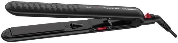 Žehlička na vlasy – keramické žehliace dosky s turmalínom, povrch Keratín & Glow pre hladké a lesklé vlasy, plávajúce žehliace dosky, antistatický ionizačný účinok, 10 nastavení teploty, rozsah teplôt 130 °C-230 °C, vhodné aj na tvorbu vĺn, šírka doštičiek 25 mm, doba nahriatia 30 s, bezpečnostný zámok, flexibilný kábel, dĺžka prívodného kábla 1,8 m, dizajn s ikonou Karl Lagerfeld, farba čierna Select brand: ÚvodHlavné informácieGalériaTechnická špecifikáciaŽehlička na vlasy Rowenta x KARL LAGERFELD SF323LF0 OptilissDych vyrážajúci účes ako z kaderníctva s vlasovou žehličkou Rowent