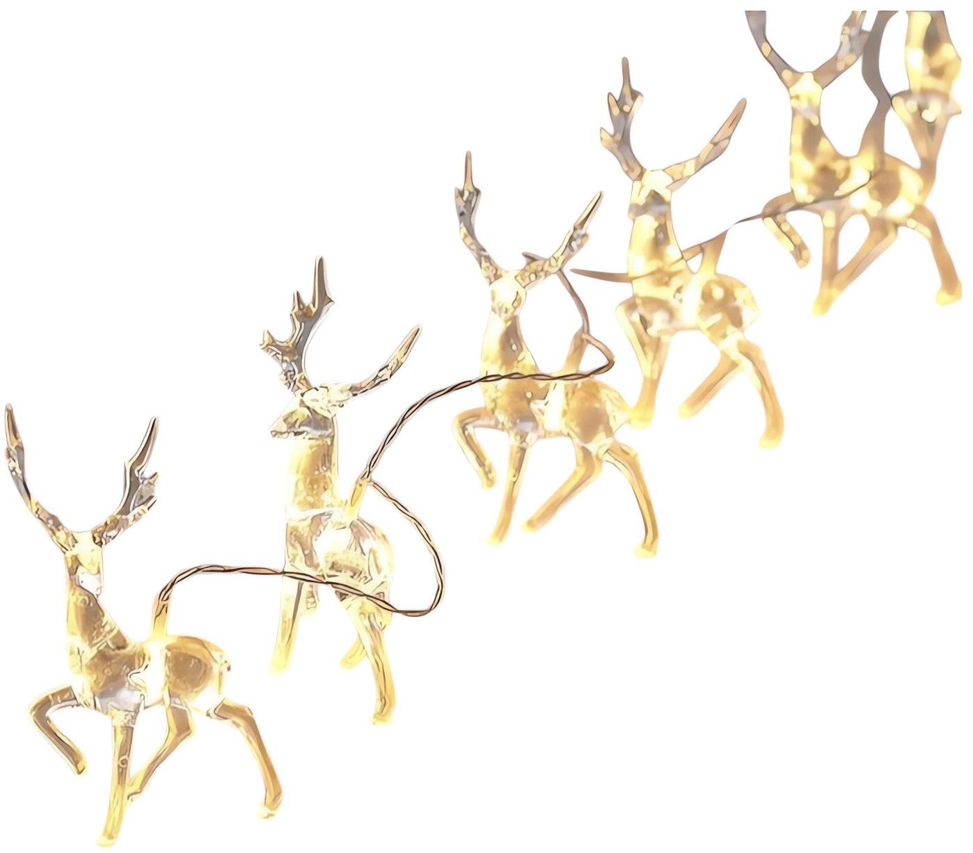 Vianočné osvetlenie vnútorné – jelen, batériové napájanie, príkon 45 W, zdroj svetla LED diódy, biela farba svetla, na AAA batérie, rozmery 11,5 × 145 cm (V׊), hmotnosť 0,26 kg Kľúčové vlastnosti vianočného svetelného závesu 24955…