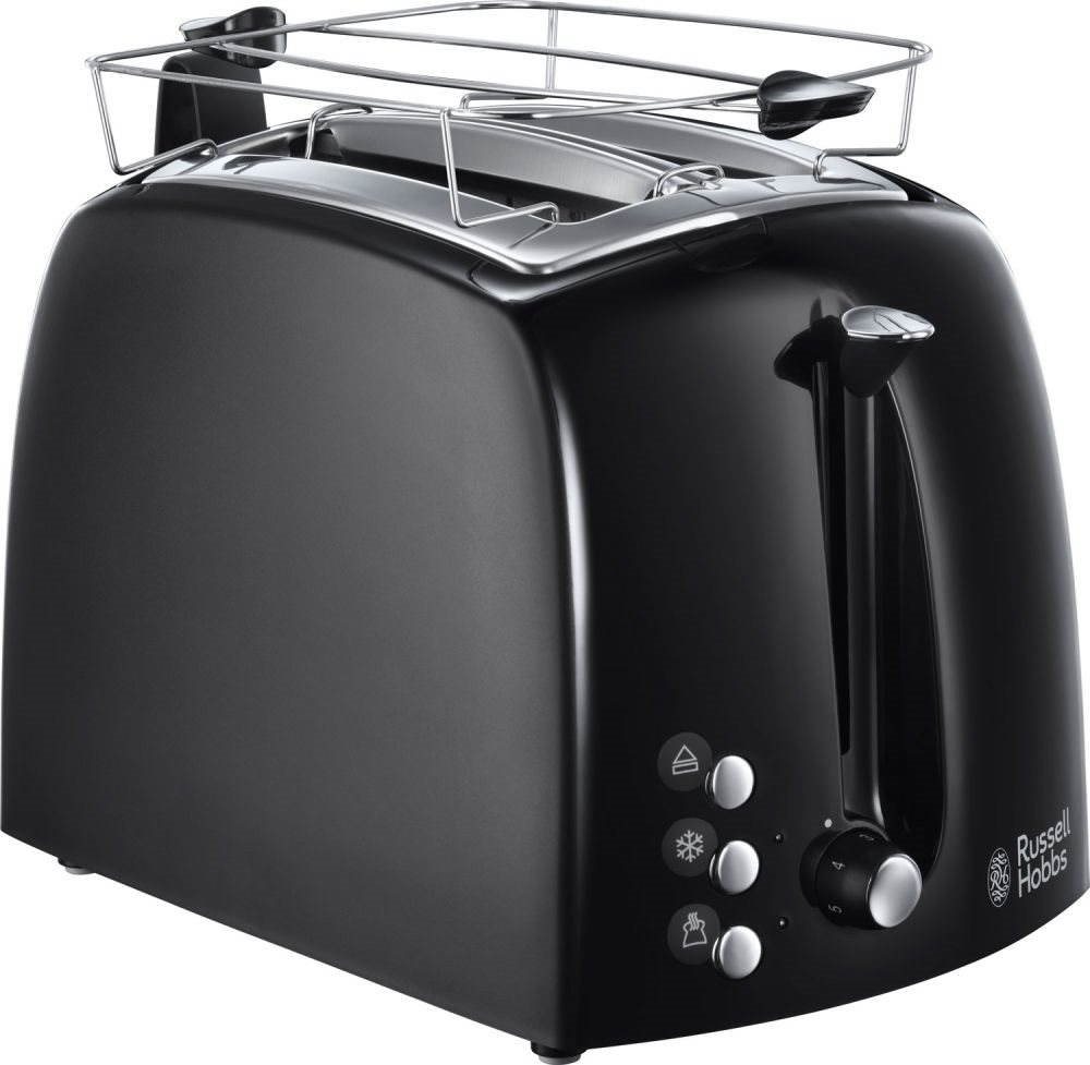 Hriankovač – na 2 hrianky, regulácia opekania, rozmrazovanie a tlačidlo okamžitého ukončenia, súčasťou vyberateľná miska na omrvinky a nadstavec na zapekanie pečiva, materiál plast, farba čierna Dizajnový hriankovač Russell Hobbs Textures Plus 22601-56 s lešteným povrchom a s matnými aj chrómovými prvkami určite bude ozdobou každej kuchyne. Je vybavený extra širokými prieh