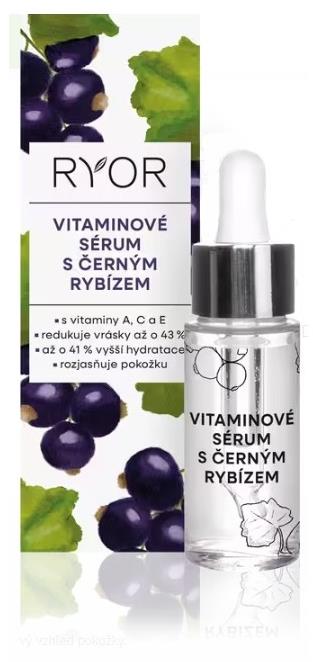 Pleťové sérum – denný a nočný variant, účinok regeneračný, s kyselinou hyalurónovou, s retinolom (vitamín A) a s vitamínmi, na mastnú, normálnu, zmiešanú, suchú a zrelú pleť, objem 15 ml Pleťové vitamínové sérum Ryor s čiernymi ríbezľami omladzuje pleť a vypína vrásky až o 43 %. Zvyšuje produkciu vlastného kolagénu a vďaka obsahu retinolu vyhladzuje textúru pokožky a redukuje pigmento