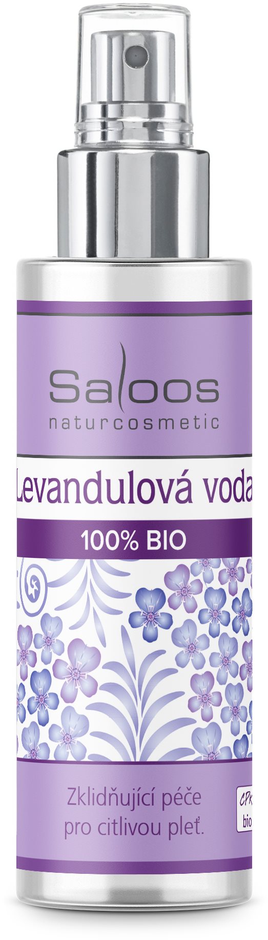 Pleťová voda – dámska, na mastnú, normálnu, zmiešanú, suchú a zrelú pleť, vyhotovenie bio, objem 100 ml 100 % Bio Levanduľová voda Saloos je prírodné tonikum na upokojenie problematickej pokožky so sklonom k akné, ekzému či lupienke. Je vhodná aj na citlivú pleť, detskú pokožku či vlasy. Vďaka antimikro