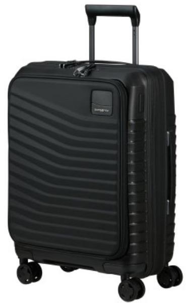 Cestovný kufor – na kolieskach, malý, škrupinový, objem 42 l, rozmery 55 × 40 × 23 cm (V׊×H), menovka, upínacie pásy a vnútorné vrecko, 4 kolieska, zapínanie dvojcestným zipsom, TSA zámok, teleskopické držadlo, čierna farba, jednofarebný motív, hmotnosť 2,7 kg Samsonite INTUO Spinner 55 EXP Easy Access je škrupinový kufor s veľmi podareným dizajnom, ktorý splní všetky požiadavky, ktoré sú na batožinu kladené. Je vyrobený z polypropylénu. Cestovný kufor Sams