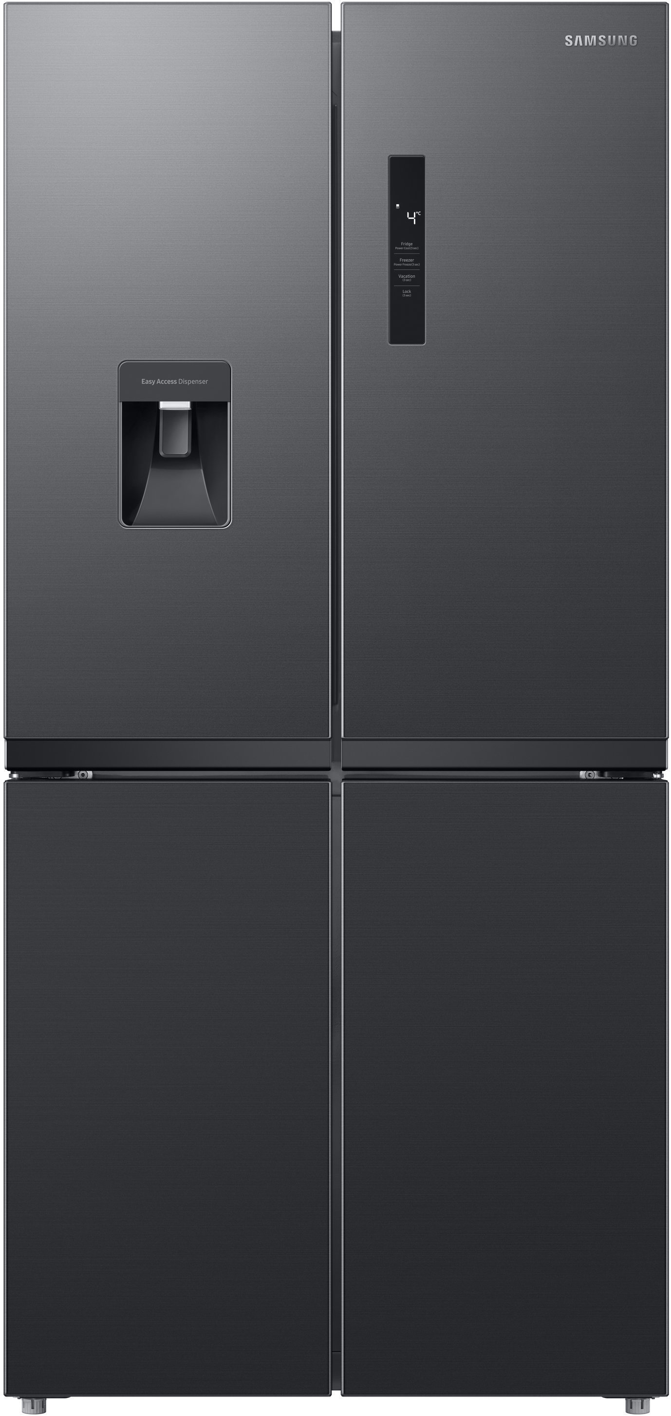 Americká chladnička – štvordverová, energetická trieda E, objem chladničky 329 l, objem mrazničky 159 l, 3 police, 6 priehradiek v mrazničke, 2 chladiace okruhy, displej a LED osvetlenie, rozmery 179,3 × 83,3 × 74 cm (V׊×H) Komfort moderného chladenia a technologických inováciíDvojitá sila chladenia chladničky Samsung RF48A401EM9/EOŠťavnaté ovocné plody a čerstvá zelenina. Uistite sa, že im tieto vlastnosti vydržia čo na