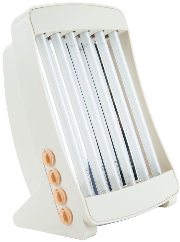 Horské slnko – domáce solárium, na opaľovanie tváre a dekoltu, 6 ružových a modrých UVA trubíc, časovač, priestor na uloženie kábla, súčasťou balenia dva páry ochranných okuliarov, rukoväť, výkon 85 W, napájanie 220–240 V, rozmery…