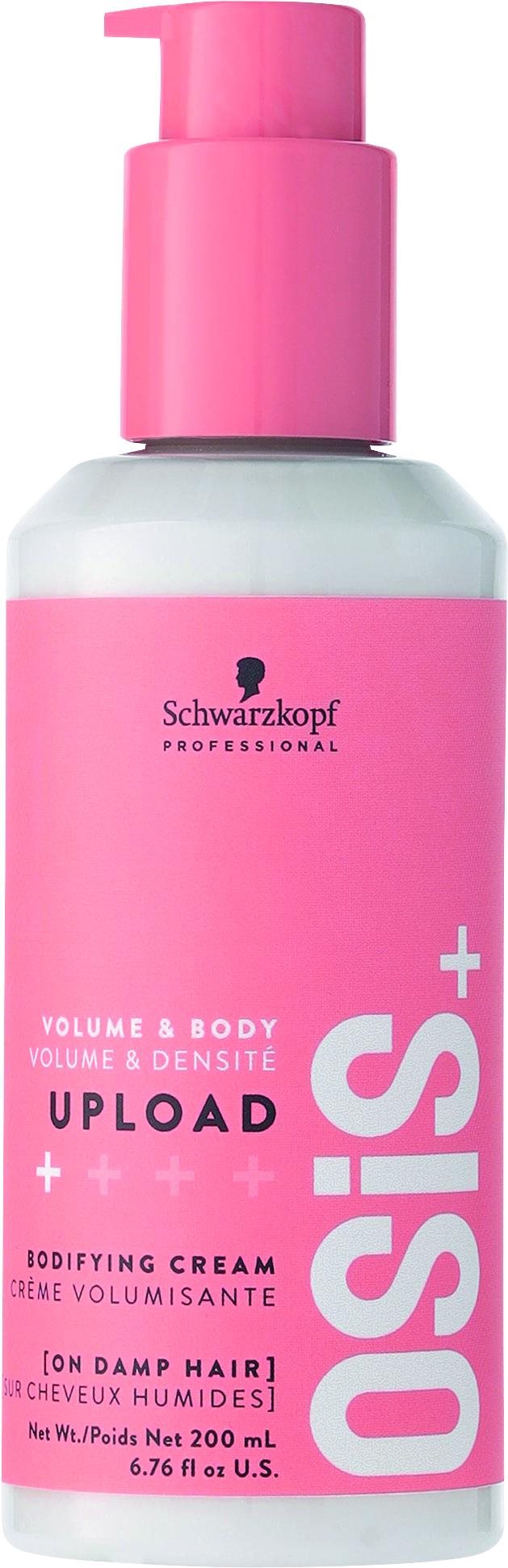 Krém na vlasy – vyhotovenie: profesionálne a vegan, na všetky typy vlasov, chráni pred vysokou teplotou, ľahká fixácia, rad Osis, objem 200 ml Schwarzkopf Professional OSiS+ Upload je ľahký stylingový krém s ošetrujúcimi a ochrannými vlastnosťami. Obsahuje pantenol, ktorý vlasy zjemňuje a hydratuje. Krém tiež uhladzuje folikuly, a tým zaisťu
