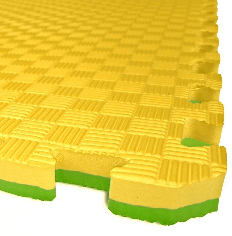 Tatami – na taekwondo, džudo a karate, protišmykové, rozmery 100 × 100 × 2,6 cm (D׊×H), materiál EVA pena, zelená a žltá farba Tatami podložka dvojfarebná. Tatami podložka je jasnou voľbou pre všetkých, ktorí hľadajú kvalitnú a bezpečnú podložku na cvičenie. Podložka je vyrobená zo spoľahlivého a odolného EVA penového materiá