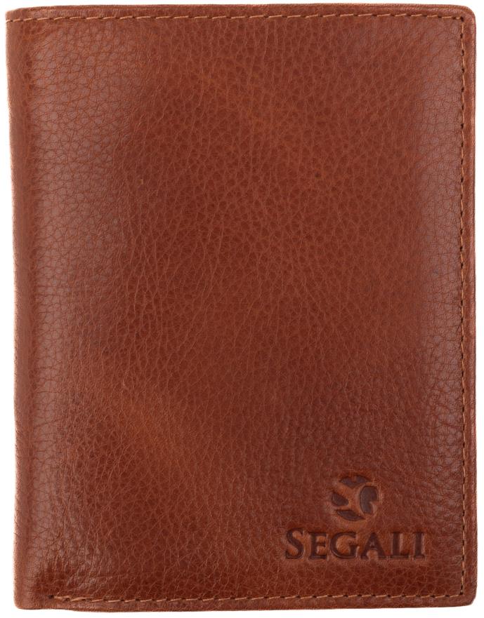 Peňaženka – kožená, s vreckom na mince a bankovky, s priehradkou na karty a doklady, na 8 kariet, bez zapínania, ručne šitá, každodenné využitie, hnedá farba, rozmery 12,2 × 9,5 × 2 cm (V׊×D) Pánska kožená peňaženka od českej značky SEGALI šitá na výšku, čiže peňaženka „náprsná“ je šitá z kvalitnej hovädziny. Klasická, jednoduchá peňaženka v módnom dizajne a stále žiadanej koňakovej farbe
