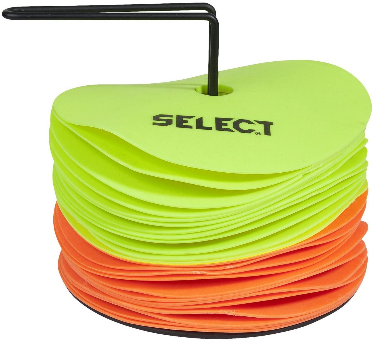 Tréningová pomôcka – 12 žltých a 12 oranžových značiacich podložiek vhodných na tréning, vhodné na halové použitie, náhrada za klasické kužele Tréningová pomôcka Select Floor Marker Mat Súprava pomáha efektívne vytýčiť priestor pri tréningu a podporiť rozvoj koordinácie aj rýchlosti. Vďaka svojej ľahkej a skladnej konštrukcii predstavuje pra