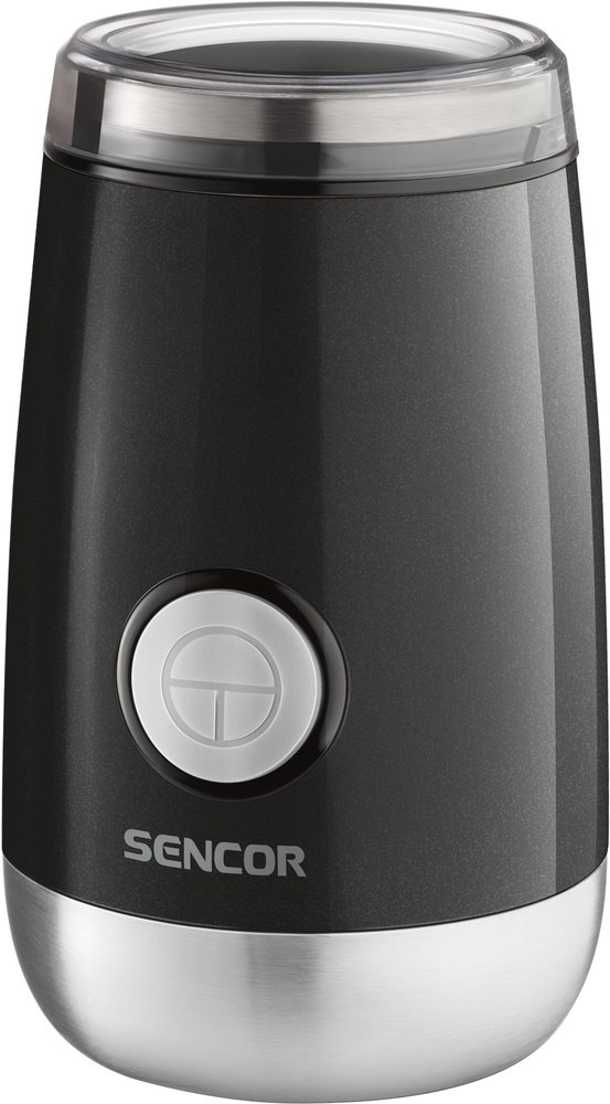 Mlynček na kávu – príkon 150 W, osadený trieštivými nožmi, kovový mlecí mechanizmus, 1 hrubosť mletia, veľkosť zásobníka 60 g, funkčný iba s nasadeným vekom, s priestorom na kábel, s protišmykovými nožičkami, s pulzným spínačom, materiál tela plast, rozmery 17,6 × 11,6 × 11,6 cm (V׊×H), dĺžka kábla 0,95 m, hlučnosť 85 dB, hmotnosť 0,8 kg, čierna farba Mlynček na kávuSCG 2051BKElegantný pomocník do každej kuchyneElektrický mlynček na kávu SENCOR SCG 2051BK uľahčí nielen mletie zrnkovej kávy, ale aj orechov, byliniek, maku a ďalšieho korenia. Elektri