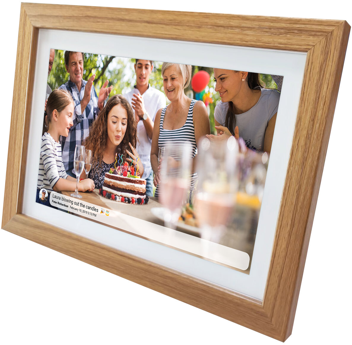 Digitálny fotorámik 256 mm, 1280 × 800, prehrávanie videa – MP4, pripojenie na internet, hodiny, reproduktory, wifi a smart Digitálny fotorámikSDF 1093 OAK WIFIZobrazenie fotografií a videíElegantný digitálny fotorámik SDF 1093 OAK okamžite zaujme moderným dreveným dizajnom, ktorý zapadne do každého interiéru, a
