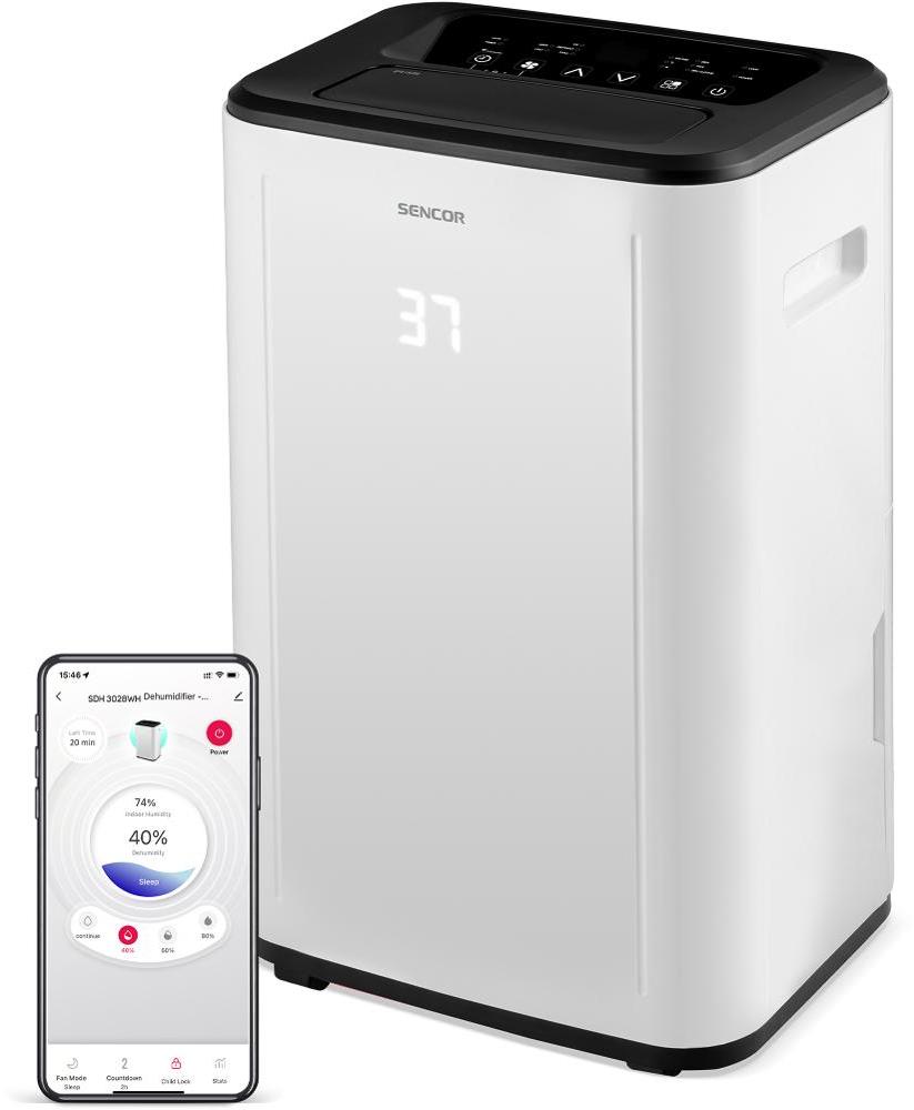 Odvlhčovač vzduchu – odporúčaná veľkosť miestnosti 89 m², kapacita odvlhčovania 30 l/deň, objem nádoby 6 l, hlučnosť 43 dB, regulácia výkonu, časovač, automatické odvlhčovanie, systém „turbo“ na sušenie bielizne, indikácia plného zásobníka, dotykový panel, auto-defrost a automatický reštart, hmotnosť 15,3 kg Odvlhčovač vzduchuSDH 3028WHOdvlhčenie až 30 litrov vody denneNa zabezpečenie pevného zdravia pre všetkých členov rodiny a udržanie čistého domova je kľúčové udržiavať správnu vlhkosť vzduchu. A práve