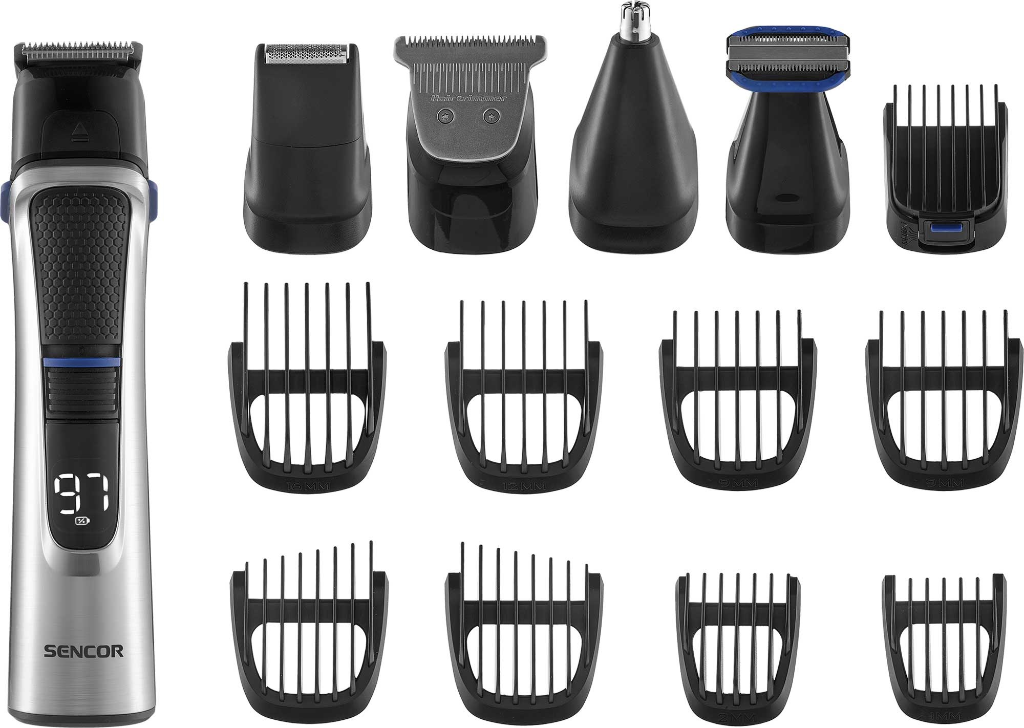 Zastrihávač – na vlasy, fúzy a nos/uši, pánsky, displej, rýchle nabíjanie, indikátor stavu batérie, protišmyková rukoväť a nastaviteľná dĺžka strihu, 14 nadstavcov, materiál čepelí oceľ, min. dĺžka strihu 1 mm, max. dĺžka strihu 16 mm, na akumulátor, ovládanie pomocou tlačidiel ZastrihávačSHP 8500BKMultigoomer kombinuje 14 funkcií v jednom prístrojiProfesionálny zastrihávač s Li-Ion batériou s kapacitou 1 200 mAh vám uľahčí starostlivosť o vlasy aj telo. Multigroomer Sencor