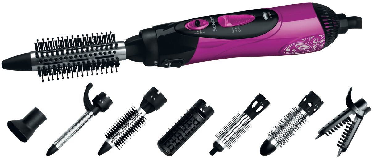 Kulmofén – statický, 2 teploty, príkon 1000 W, s funkciou ionizácie, so studeným vzduchom, 360° otočný kábel, závesné očko, poistka proti prehriatiu a LED signalizácia, koncentrátor, narovnávacia kefa a teplovzdušná kefa súčasťou balenia, čierna a fialová farba Teplovzdušná kulma na vlasy Sencor SHS 7551VT v peknom dizajne sa stane vaším pomocníkom pri vytváraní rozmanitých účesov od poriadnych lokní až po úplne rovné vlasy. Je vhodná aj na styling krátkych