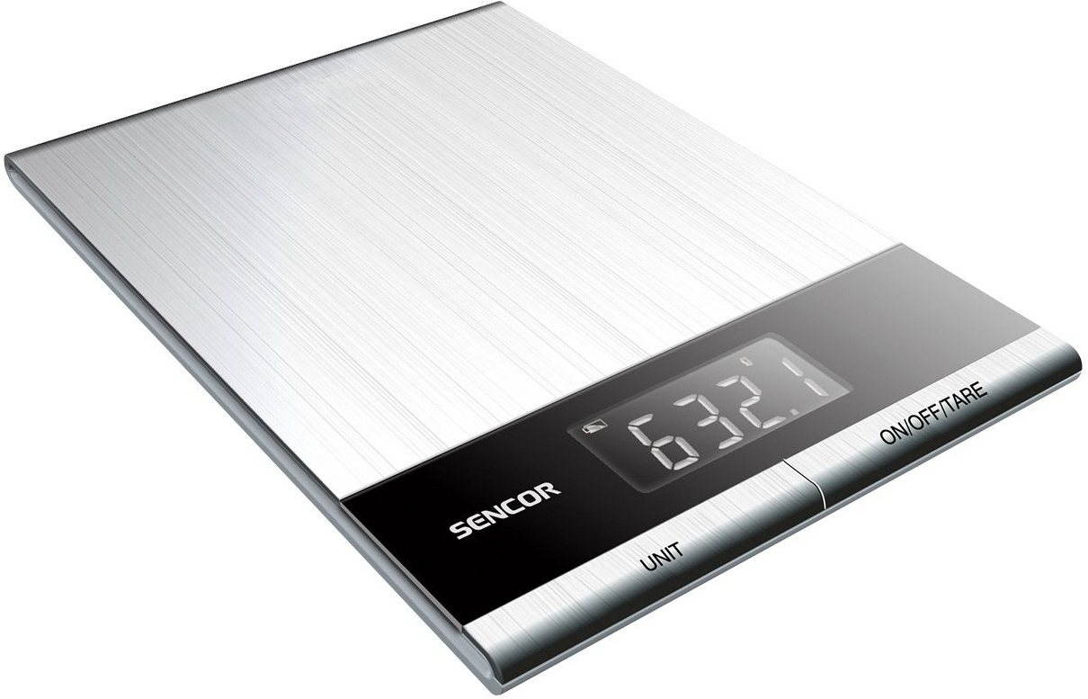 Kuchynská váha – digitálna, vrecková, klasický dizajn, váži do 5 kg s presnosťou na 1 g, s možnosťou voľby medzi jednotkami gram a mililiter, Aquatronic, automatické vypnutie, s funkciou TARE, dotykové ovládanie, materiál kov, strieborná farba, rozmery 1,4 × 16 × 23 cm (V׊×H), na 2 CR2032 batérie, batéria súčasťou balenia Kuchynská váhaSKS 5305Pomocník pre dokonalé váženieUltra slim dizajn s výškou iba 14 mm a nerezový povrch pre jednoduchú a hygienickú údržbu dopĺňa extra veľký LCD displej s kontrastným podsvietením.