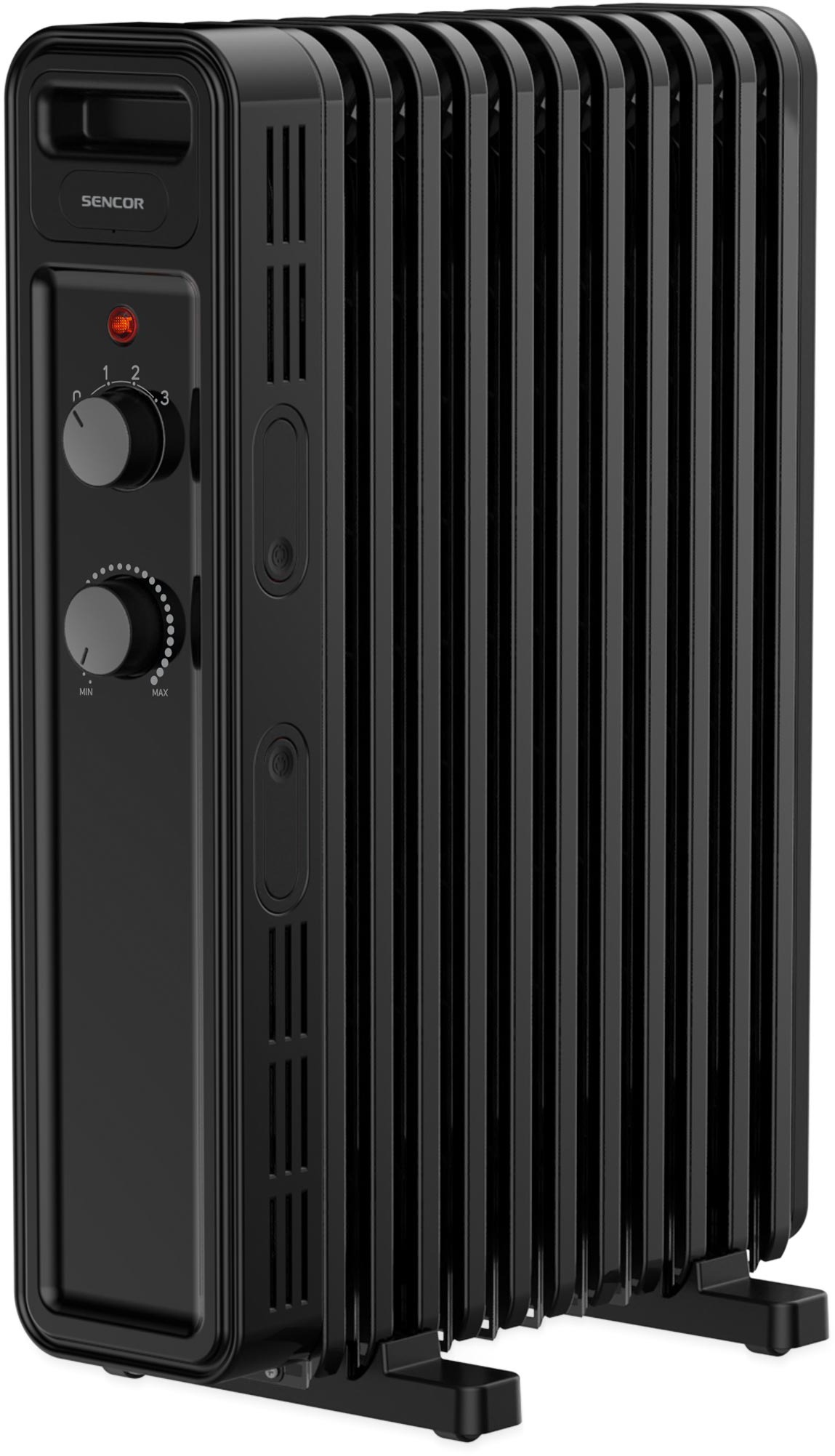 Olejový radiátor – rebrový, elektrický, voľne stojací, príkon 2300 W, čierna farba, 3 stupne výkonu, 11 vykurovacích článkov, mechanické ovládanie, ochrana proti prehriatiu a spínač naklonenia, rukoväť, termostat, transportné kolieska a držiak napájacieho kábla súčasťou, Anti-Freeze, s tichým režimom, regulácia výkonu a regulácia teploty, rozmery 57 × 39 × 22,6 cm (V׊×H), hmotnosť 9,3 kg Elektrický olejový radiátorSOH 3511BKPomocník na optimálne teplo v domácnostiNa chalupe, v kancelárii, v dielni alebo v spálni – všade tam, kde si potrebujete zakúriť či prikúriť, oceníte bezhlučnú pr