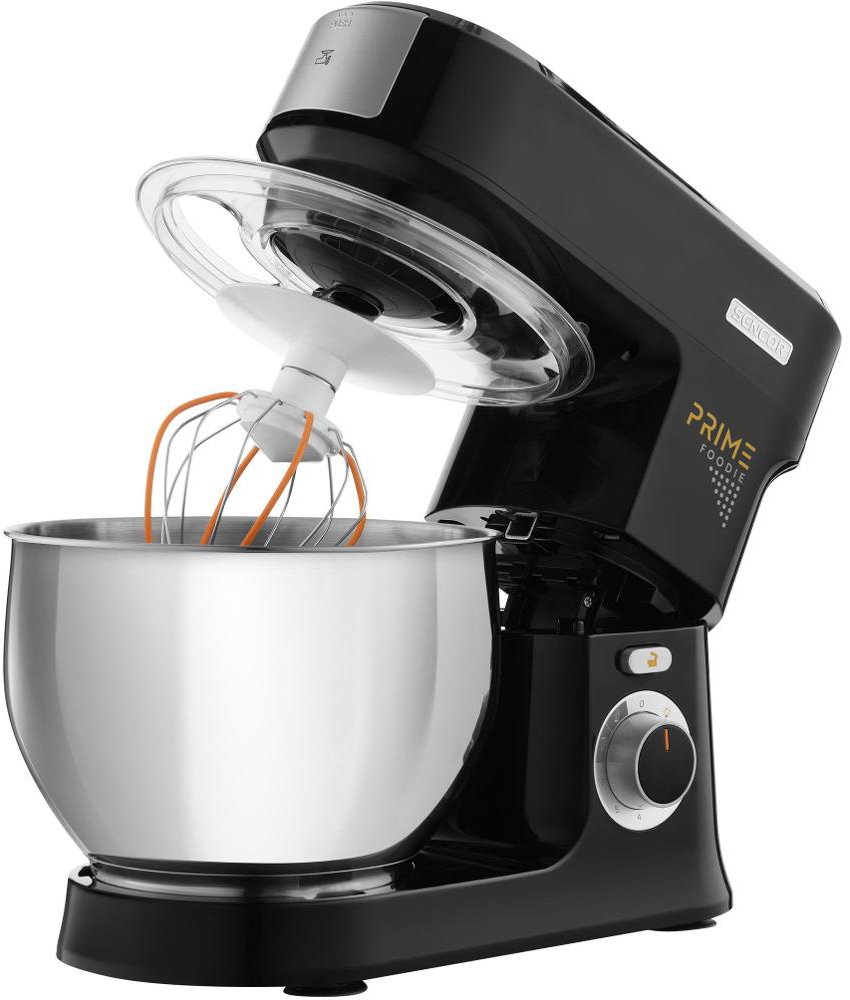 Kuchynský robot – planetárne hnetenie, príkon 1000 W, plastové vnútorné prevody, plastový plášť, materiál misy nerez, objem misy 4,5 l, 6 rýchlostí, plynulá regulácia otáčok, tlačidlo PULSE, s výkyvným ramenom, funkcie šľahanie, miesenie, hnetenie, osvetlenie, mletie a mixovanie, súčasťou nadstavec na plnenie údenárskych produktov, mlynček na mäso, formička na cukrovinky, šľahacia metlička (balónová metlička), plochá metlička (flexi metlička), hnetací hák, miešacia metlička (stierková metlička), misa, utláčadlo, nalievací štít a tvorítko na pečivo, hlučnosť 92 dB, čierna farba Kuchynský robotSTM 3741BKVýkonný a všestranný robot do každej kuchyneVšestranný kuchynský robot Sencor STM 3741BK je neoceniteľným pomocníkom do každej domácnosti. Silný 1 200 W motor vám ušetrí niele