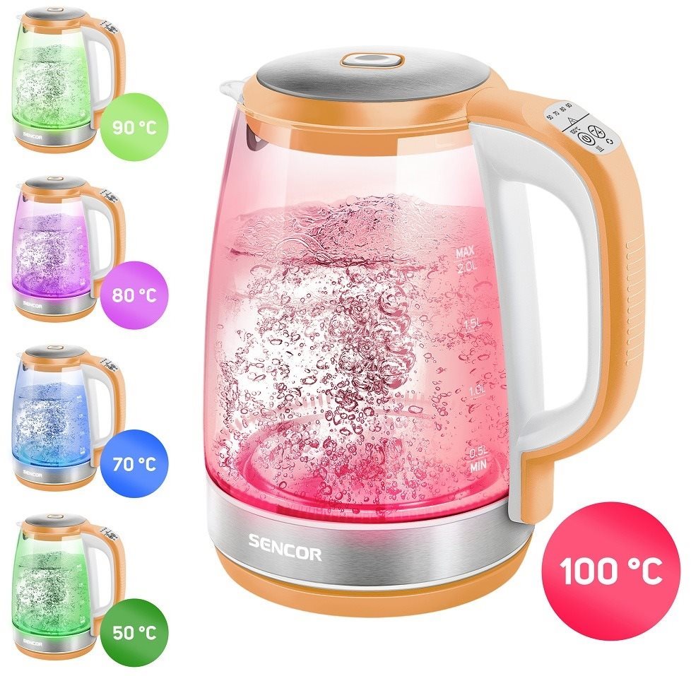 Rýchlovarná kanvica – s reguláciou teploty, objem 2 l, priehľadné vyhotovenie, príkon 2200 W, filter a úložný priestor na kábel, automatické otváranie veka, automatické vypnutie, ochrana proti prehriatiu, udržanie teploty, materiál sklo Rýchlovarná kanvica s reguláciou teplotySom rýchlovarná kanvica, viem regulovať teplotu a mám objem 2 lSencor SWK 2193ORBez akéhokoľvek väčšieho zaťaženia ohrejem vodu na čaj aj kávu. Vďaka môjmu obje