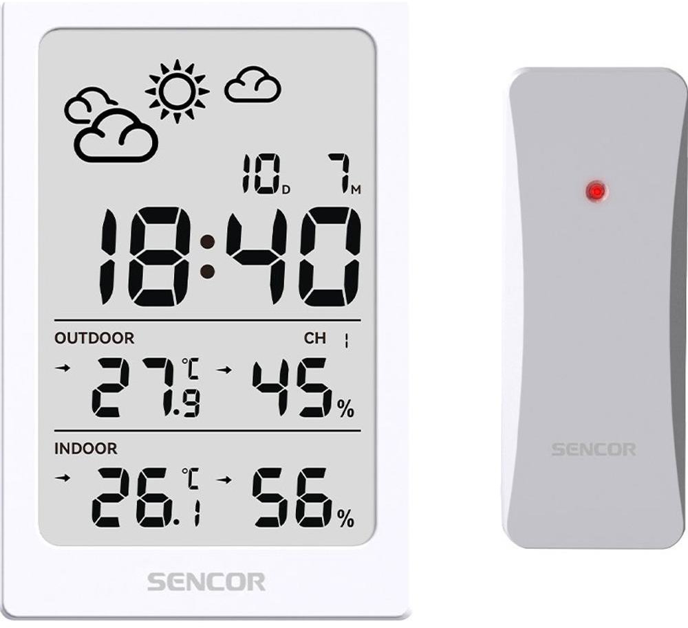 Meteostanica – domáca, bezdrôtová, pripojenie cez rádiové vlny, vnútorná, s predpoveďou a sledovaním aktuálneho počasia, opakované budenie a budík, meranie teploty, vlhkosti, zobrazuje čas a dátum, dosah bezdrôtového snímača 80 m, maximálne možno pripojiť 3 bezdrôtové snímače, uzatvorený systém, využitie samostatne, na batérie, snímač súčasťou balenia, umiestnenie na stenu a na stôl, rozmery 100 × 65 × 24 mm (V׊×H) MeteostanicaSWS 2300 WŠtýlový pomocník do každého domovaMeteostanica SENCOR SWS 2300 W je štýlový a kompaktný pomocník pre každého, kto chce mať neustály prehľad o teplote, vlhkosti aj predpovedi poča