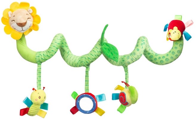 Hračka na kočík , na autosedačku alebo do postieľky – špirála, plyšová, polyesterová, na obtočenie, s kontrastnými efektami, hryzadlo a zrkadielko súčasťou, odnímateľná, motív zvieratká, viacfarebná, vhodná od narodenia, rozmery 70 × 300 × 600…