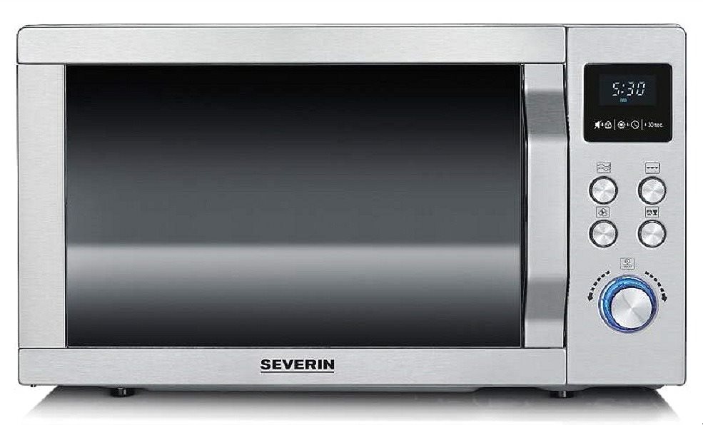 Mikrovlnná rúra – voľne stojacia, príkon 1950 W, manuálne ovládanie, vnútorný objem 25 l, 10 úrovní výkonu, 900 W výkon mikrovlnného ohrevu, výkon horúceho vzduchu 1950 W, disponuje grilom s výkonom 1950 W, 27 cm otočný tanier, horúci vzduch, rozmrazovanie, gril a predhrievanie, automatické programy, časovač a detská poistka, otváranie dvierok doľava, panvica na pizzu súčasťou, vonkajšie rozmery 28 × 48,5 × 43,5 cm (V׊×H), vnútorná výška 17,5 cm Mikrovlnná rúra predstavuje v dnešnej dobe neoceniteľného pomocníka, ktorý zaujímavo doplní vašu kuchyňu a zároveň vás ohromí aj množstvom moderných funkcií. Voľne stojacu mikrovlnnú rúru SEVERIN ocen