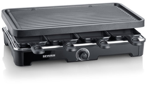 Elektrický gril – stolný, raclette a prenosný, príkon 1400 W, počet programov: 1, materiál grilu: plast, materiál plochy na grilovanie: keramika, plocha na grilovanie 41,5 cm × 26 cm, počet plôch na grilovanie: 1, hmotnosť 2,052 kg, dĺžka napájacieho kábla 1,95 m, protišmykové nožičky, regulácia teploty a signalizácia chodu Kľúčové vlastnosti elektrického grilu Severin RG 9670Raclette párty gril s keramickým povrchomVrátane 8 panvíc a stierkyNastaviteľný termostat a kontrolkaNepriľnavý povrch uľahčuje odstránenie gratino