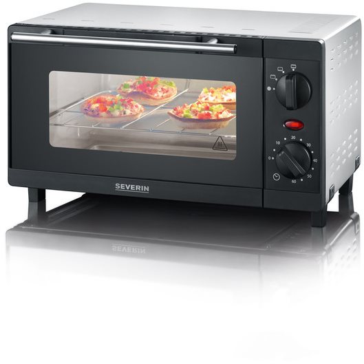Mini rúra – elektrická, príkon 800 W, objem 9 l, horný ohrev a spodný ohrev, časovač, grilovacia mriežka v balení, strieborná farba, rozmery 20,6 × 35,8 × 31 cm (V׊×H) Mini rúra Severin TO 2052 má výkon 800 W a objem priestoru na pečenie 9 l. Využijete ju univerzálne pri príprave hranoliek, mini pizz, žemlí a mnohých ďalších jedál. Horný a spodný ohrev je možné prep