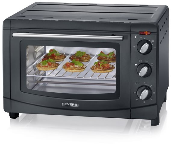 Mini rúra – elektrická, príkon 1500 W, objem 20 l, nastaviteľná teplota od 100 do 230 °C, horný ohrev a spodný ohrev, termostat a časovač, grilovací ražeň, plech a tácka na omrvinky v balení, čierna farba, rozmery 43,5 × 40 × 30 cm (V׊×H) Pokiaľ potrebujete menší variant klasickej rúry do malého bytu alebo napríklad na internát, mohla by vám vyhovovať mini rúra SEVERIN. Nielenže je cenovo dostupnejšia, ale tiež ju ľahšie zapojíte. Jej