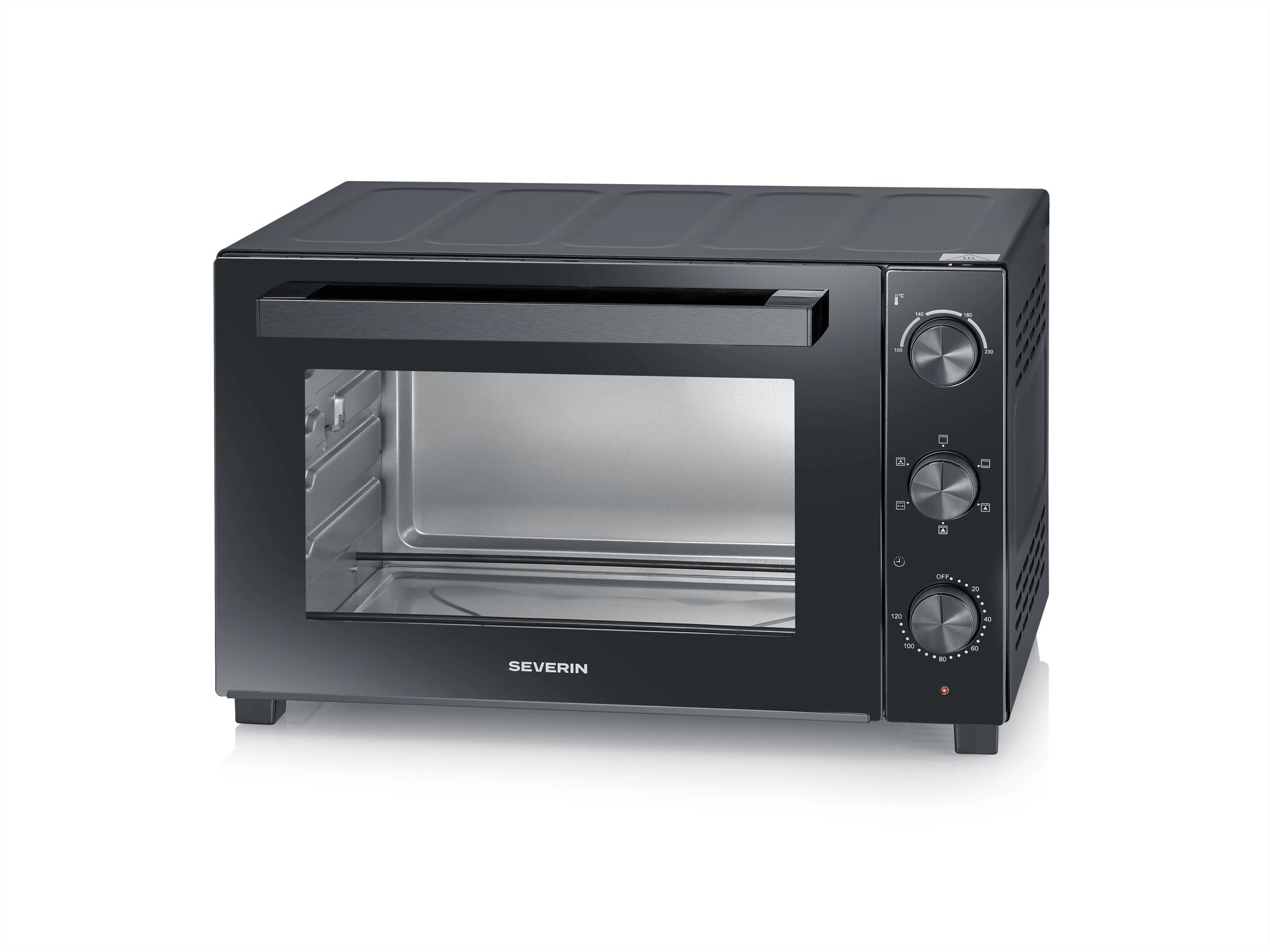 Mini rúra – teplovzdušná a elektrická, príkon 1800 W, objem 46 l, nastaviteľná teplota od 100 do 230 °C, horný ohrev, pravý horúci vzduch a spodný ohrev, časovač a svetelná kontrolka, grilovací ražeň, pizza kameň, plech a tácka na omrvinky v balení, čierna farba, rozmery 36,5 × 57 × 40,5 cm (V׊×H) V prípade, že vaša kuchyňa nie je dostatočne veľká na zaobstaranie klasickej rúry, mohla by sa vám páčiť mini rúra SEVERIN. Ponúka nielen podobné možnosti, ale tiež ju ľahšie zapojíte. Jej príkon dosa