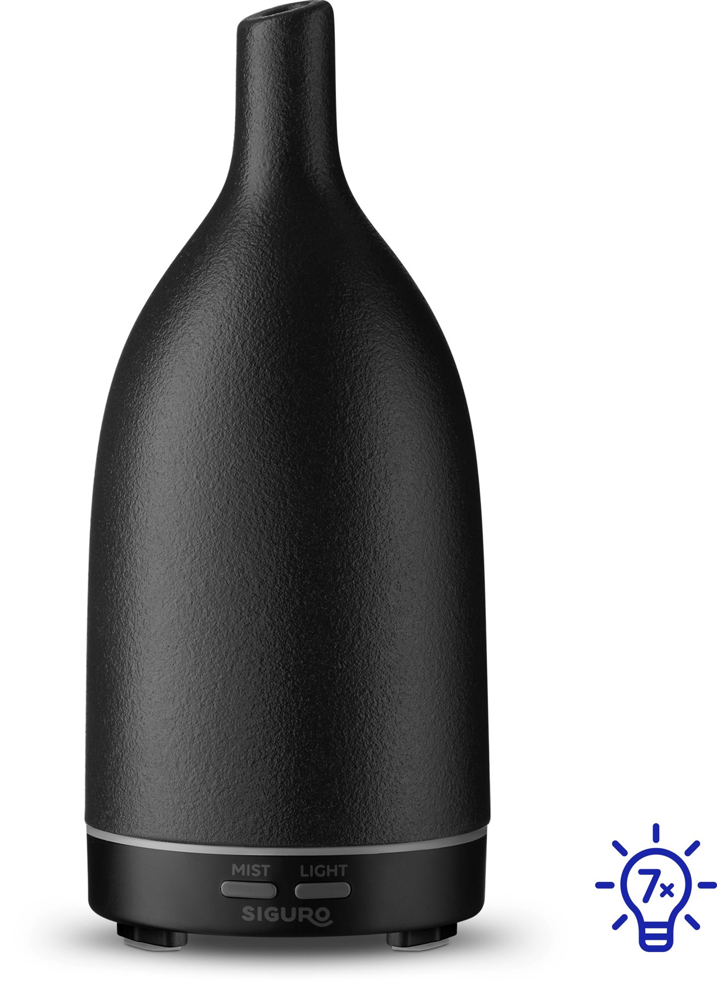 Aróma difuzér – telo z pálenej keramiky, objem nádoby 100 ml, výkon 9 W, časovač, tichá prevádzka (<35dB), časovač, automatické vypnutie, 7 farieb podsvietenia, odporúčaná veľkosť miestnosti 20 – 40 m², intenzita zvlhčovania 30 – 35 ml/h, dĺžka prevádzky až 3 h, dĺžka kábla 180 cm, 3 roky záruka Aróma difuzér Siguro AD-C351CB SwallowtailNádherne si prevoňajte miestnosť, zlepšite náladu, zvlhčite vzduch a vytvorte útulnú atmosféru. To všetko zvládnete pomocou jediného prístroja – aróma difuzér