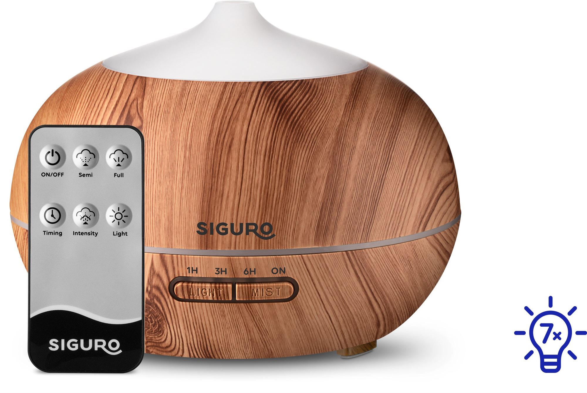 Aróma difuzér objem nádoby 400 ml, Automatické vypnutie, Podsvietenie, LED podsvietenie, Časovač, Diaľkové ovládanie, Ultrazvuk, Nastavenie intenzity, Zvlhčovač a Aromaterapia, počet farieb 7, dĺžka prevádzky 10 h, odporúčaná veľkosť miestnosti 40 m2, hlučnosť 35 dB, farba hnedá a imitácia dreva, materiál plast, 3 roky záruka Aróma difuzér Siguro AD-G420LW BrimstoneNádherne si prevoňajte miestnosť, zlepšite náladu, zvlhčite vzduch a vytvorte útulnú atmosféru. To všetko zvládnete pomocou jediného prístroja – aróma difuzéra